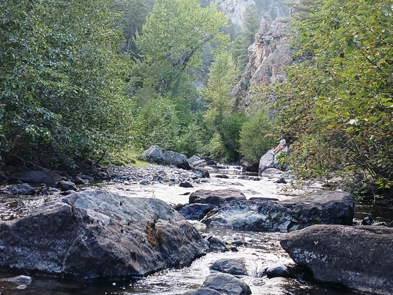 Our 40-acre placer mining claim is located about 26 miles from the town of Townsend on Crows Creek with a good fishing hole. Townsend has few amenities such as gas, food, lodging, and a hardware store. The access road is 4wd but there is good camping below the claim. The claim features great bedrock and large boulders. Click here Google Earth Fly To and see an aerial photo of Old Crow and the claim boundaries. Google map it for directions to the claim. Estimated GPS Coordinates: