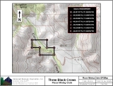 Our 40-acre placer mining claim is located about 26 miles from the town of Townsend on Crows Creek with a good fishing hole. Townsend has few amenities such as gas, food, lodging, and a hardware store. The access road is 4wd but there is good camping below the claim. The claim features great bedrock and large boulders. Click here Google Earth Fly To and see an aerial photo of Three Black Crows and the claim boundaries. Google map it for directions to the claim. Estimated GPS Coordinates: