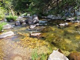 Senorita De Oro ±40 Acres Price: $12,000 This Spanish Creek is legendary in Plumas County for gold. The Tertiary channels piled gravels thick and deep along its valley walls that were amazingly rich. Miners armed with long toms, rockers and hydraulic hoses extensively mined the massive deposits for their fortune. It was a true bonanza. The Spanish Creek headwaters drained granite intrusions that shot gold-rich quartz veins into the surrounding rock, and over the millions of years, eroded and washed down valley only to accumulate in thick, massive deposits. The gold is bright and plentiful! It is both rounded (Tertiary gravel source) and chunky (nearby bedrock source). The claim attributes are:
