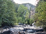 Our 40-acre placer mining claim is located about 26 miles from the town of Townsend on Crows Creek with a good fishing hole. Townsend has few amenities such as gas, food, lodging, and a hardware store. The access road is 4wd but there is good camping below the claim. The claim features great bedrock and large boulders. Click here Google Earth Fly To and see an aerial photo of Old Crow and the claim boundaries. Google map it for directions to the claim. Estimated GPS Coordinates:
