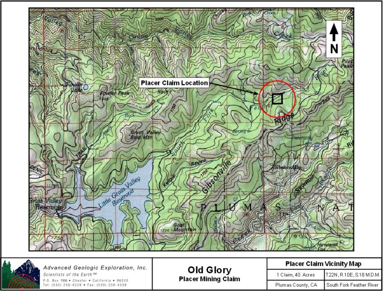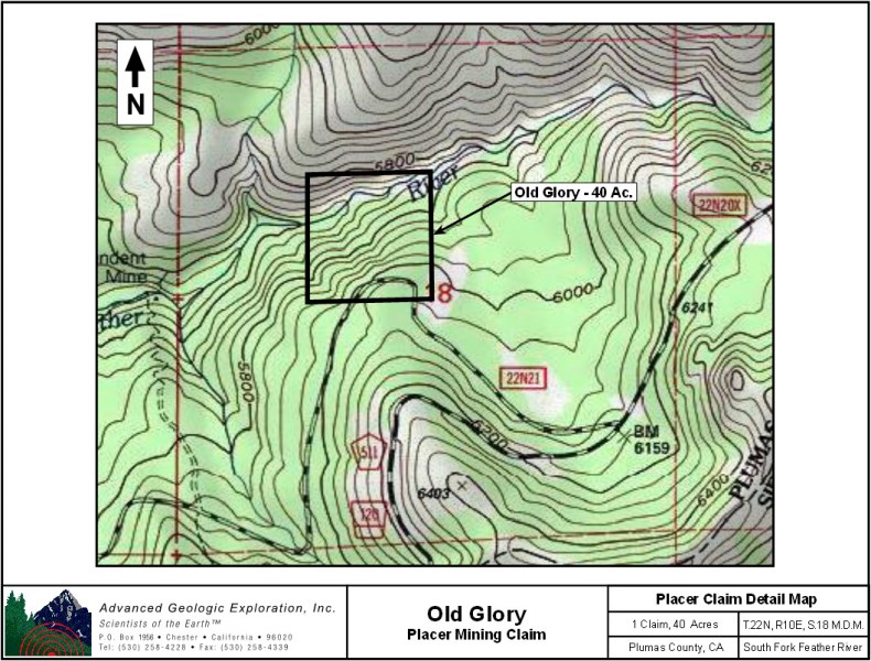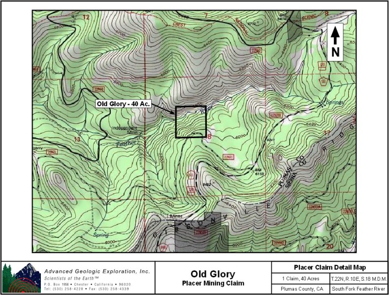 Click here Google Earth Fly To and see an aerial photo of the Old Glory and the claim boundaries.