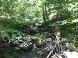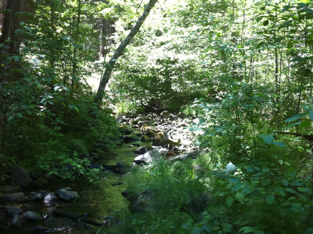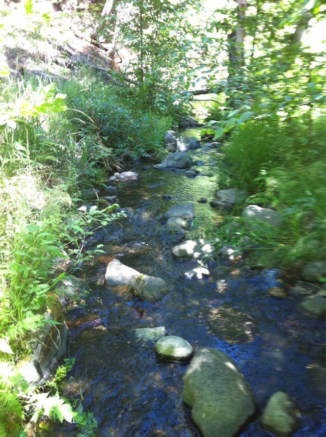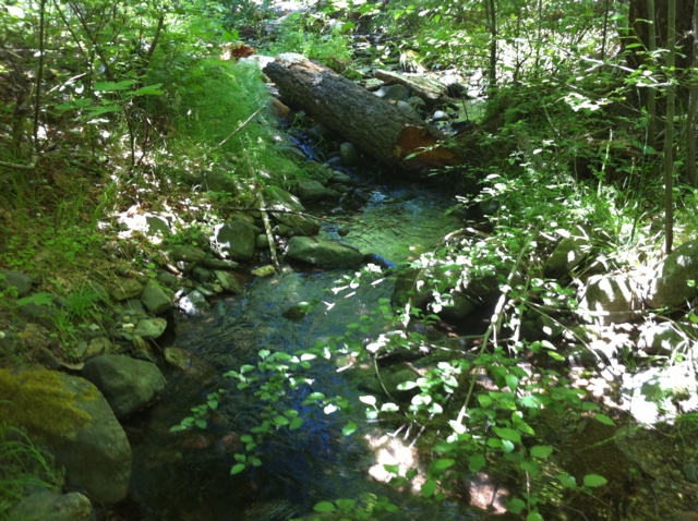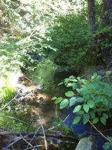 Sometimes prospectors need a break from the high-pace, high skill level claims and just need to have fun. The Iron Horse 40-acre placer mining claim on Thompson Creek provides just that opportunity. With its relatively low, but constant flow, the Iron Horse claim will provide ample opportunities to have fun and find some gold. Iron Horse placer mining claim is located about six miles (as the crow flies) southeast of Quincy along the Quincy-La Porte Road (see vicinity map). The claim is at the sweeping left-hand hairpin corner about five miles up the hill from Highway 89. The GPS coordinates for the intersection of the Quincy-La Porte Road and Thompson Creek is shown below. Thompson Creek drains the rich meta-sedimentary rocks associated with Claremonte Peak and Bachs Creek Ridge, which are legendary for bedrock gold. Thompson Creek also drains Peppard Flat, a large deposit of Tertiary gravels from the ancient Feather River prior to the uplift of the Sierra Nevada. Several placer mining claims are located along Thompson Creek and everyone says the gold is both coarse, like the cereal Grape Nuts (bedrock gold), and rounded (Tertiary placer gold). Grab samples from root masses, moss and cracks revealed several flakes in every pan. The Quincy-La Porte Road bisects the claim into two parts, an upper portion and a lower portion. A large turn out along the road provides ideal staging area for all your prospecting activities as well as RV parking. An improved gravel road provides access to the upper portion of the claim. As the photos show, it is just a short jump down from the road to the water. Prospecting skill levels for The Iron Horse placer claim are from recreational to beginner, because of its shallow depth to bedrock, low water flow, and easy access. Gravels-on-bedrock contacts are widespread and as the photographs show, floodwaters appear and scour the rock every so often to replenish the gravels and the GOLD! With all the cracks and fractures, prospectors with metal detectors should find abundant rewards not only along the stream but along the slopes and within the cliffs. Miners and prospectors will have a life-time of opportunities before this claim is played out. Quincy is just a short drive away and provides good amenities, such as restaurants and accommodations. Quincy also has a modest nightlife, a movie theater, a Safeway and an Ace Hardware, as well as a series of motels and B&Bs. Sorry, no Wal-Mart. Quincy is also the county seat for the county so you can easily file your paperwork on your way through to your claim. Ore deposits: Gold-quartz veins occur principally in slate and mica schist; some are as thick as 15 feet. The veins may be massive or consist of numerous parallel stringers. The ore contains free gold and varying amounts of sulfides, chiefly pyrite. Although some of the veins have been developed for horizontal distances of several thousand feet, none has been worked to depths of greater than a few hundred feet. There are a few small Tertiary channel gravel deposits to the south. The Recent and Pleistocene valley alluvium is gold-bearing in places. Work Cited: “Gold Districts of Click here for Google Earth Fly To to see an aerial photo of the The Iron Horse claim. Google map it for directions to claim. Estimated GPS Coordinates: