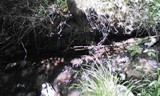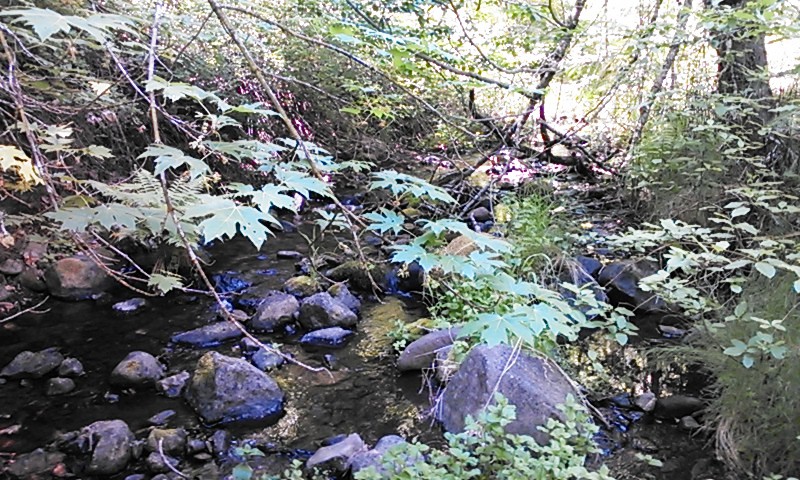 Sometimes prospectors need a break from the high-pace, high skill level claims and just need to have fun. The Wrangler 20-acre placer mining claim on Thompson Creek provides just that opportunity. With its relatively low, but constant flow, the Wrangler claim will provide ample opportunities to have fun and find some gold. The Wrangler placer mining claim is located about six miles (as the crow flies) southeast of Quincy along the Quincy-La Porte Road (see vicinity map). The claim is at the sweeping left-hand hairpin corner about five miles up the hill from Highway 89. The GPS coordinates for the intersection of the Quincy-La Porte Road and Thompson Creek is shown below. Thompson Creek drains the rich meta-sedimentary rocks associated with Claremonte Peak and Bachs Creek Ridge, which are legendary for bedrock gold. Thompson Creek also drains Peppard Flat, a large deposit of Tertiary gravels from the ancient Feather River prior to the uplift of the Sierra Nevada. Several placer mining claims are located along Thompson Creek and everyone says the gold is both coarse, like the cereal Grape Nuts (bedrock gold), and rounded (Tertiary placer gold). Grab samples from root masses, moss and cracks revealed several flakes in every pan. The Quincy-La Porte Road bisects the claim into two parts, an upper portion and a lower portion. A large turn out along the road provides ideal staging area for all you prospecting activities as well as RV parking. An improved gravel road provides access to the upper portion of the claim. As the photos show, it is just a short jump down from the road to the water. Prospecting skill levels for the Wrangler placer claim are from recreational to beginner, because of its shallow depth to bedrock, low water flow, and easy access. Gravels-on-bedrock contacts are widespread and as the photographs show, floodwaters appear and scour the rock every so often to replenish the gravels and the GOLD! With all the cracks and fractures, prospectors with metal detectors should find abundant rewards not only along the stream but along the slopes and within the cliffs. Miners and prospectors will have a life-time of opportunities before this claim is played out. Quincy is just a short drive away and provides good amenities, such as restaurants and accommodations. Quincy also has a modest nightlife, a movie theater, a Safeway and an Ace Hardware, as well as a series of motels and B&Bs. Sorry, no Wal-Mart. Quincy is also the county seat for the county so you can easily file your paperwork on your way through to your claim. Ore deposits: Gold-quartz veins occur principally in slate and mica schist; some are as thick as 15 feet. The veins may be massive or consist of numerous parallel stringers. The ore contains free gold and varying amounts of sulfides, chiefly pyrite. Although some of the veins have been developed for horizontal distances of several thousand feet, none has been worked to depths of greater than a few hundred feet. There are a few small Tertiary channel gravel deposits to the south. The Recent and Pleistocene valley alluvium is gold-bearing in places. Work Cited: “Gold Districts of Click here Google Earth Fly To and see an aerial photo of the Wrangler and the claim boundaries. Google map it for directions to claim. Estimated GPS Coordinates: