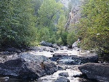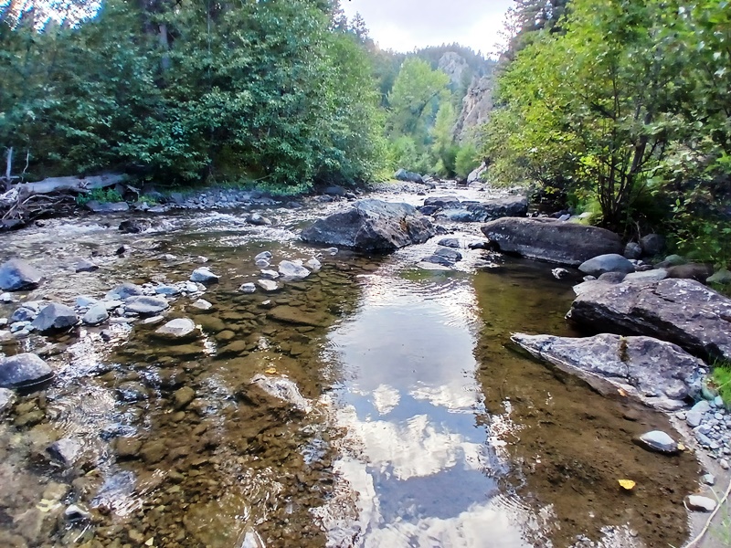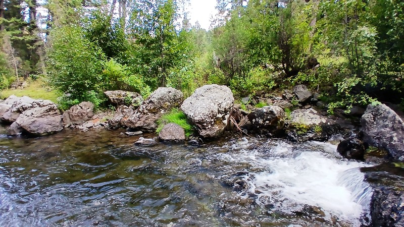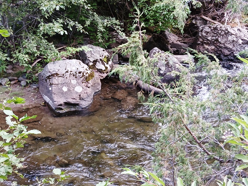 Our 40-acre placer mining claim is located about 26 miles from the town of Townsend on Crows Creek with a good fishing hole. Townsend has few amenities such as gas, food, lodging, and a hardware store. The access road is 4wd but there is good camping below the claim. The claim features great bedrock and large boulders. Click here Google Earth Fly To and see an aerial photo of Old Crow and the claim boundaries. Google map it for directions to the claim. Estimated GPS Coordinates: